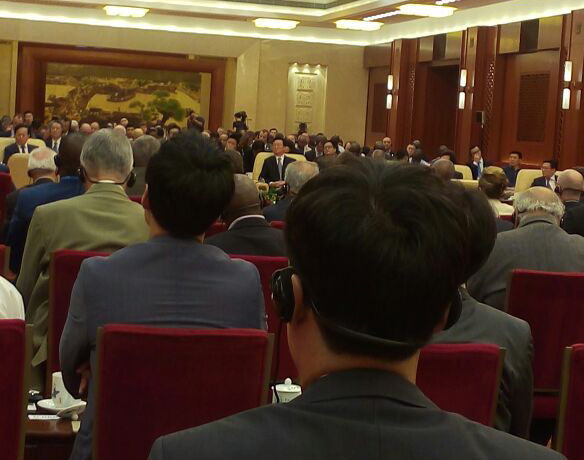 وقد تألقت القاعة التاريخية الكبرى – التي تقع في ساحة تيان أن من الشهيرة – بألوانها الرائعة وحمرتها التي تغلب على المنظر، وبالثريات العملاقة التي أعطت بأنوارها جمالية كبرى للمكان، في حين كان حسن الضيافة والاستقبال بلا حاجة إلى الإشارة له، كونه من عادات الشعب الصيني والقيادة الصينية.